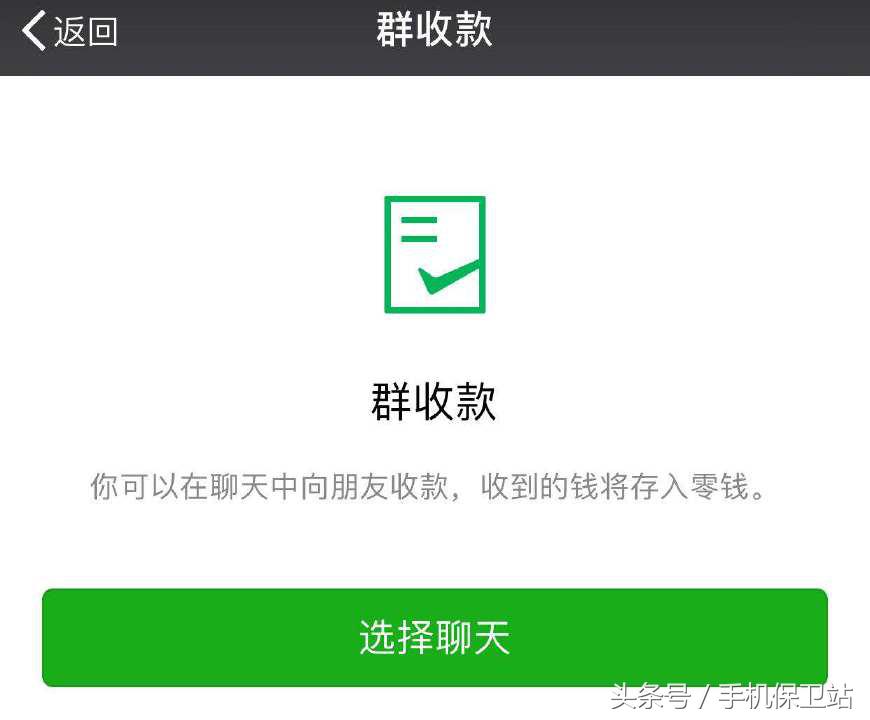 4.这个时候用户就可以选择想要群收款的微信群组啦!