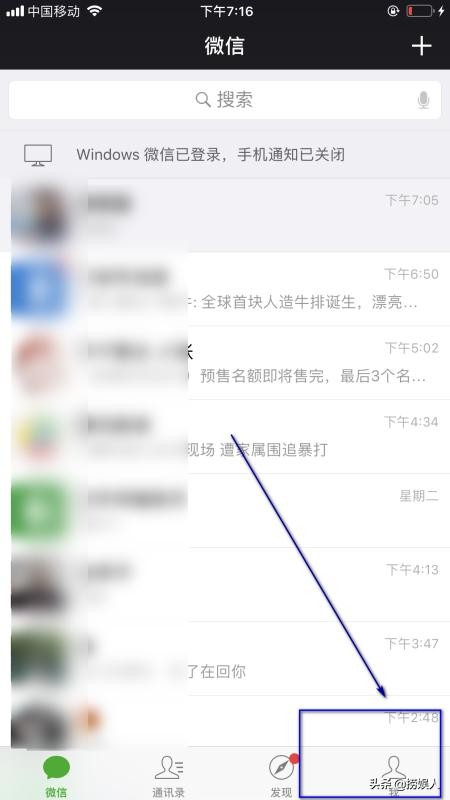 1、打开手机中的微信APP,在首页中点击右下角的【我】选项。