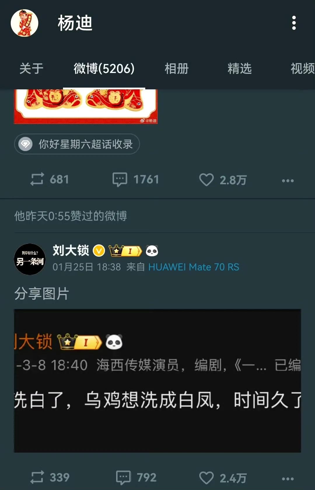 网友发现杨迪点赞了刘大锁的微博,他们两个之间的矛盾就是因为张大大背刺谢娜,杨迪一家子都很感恩谢娜的