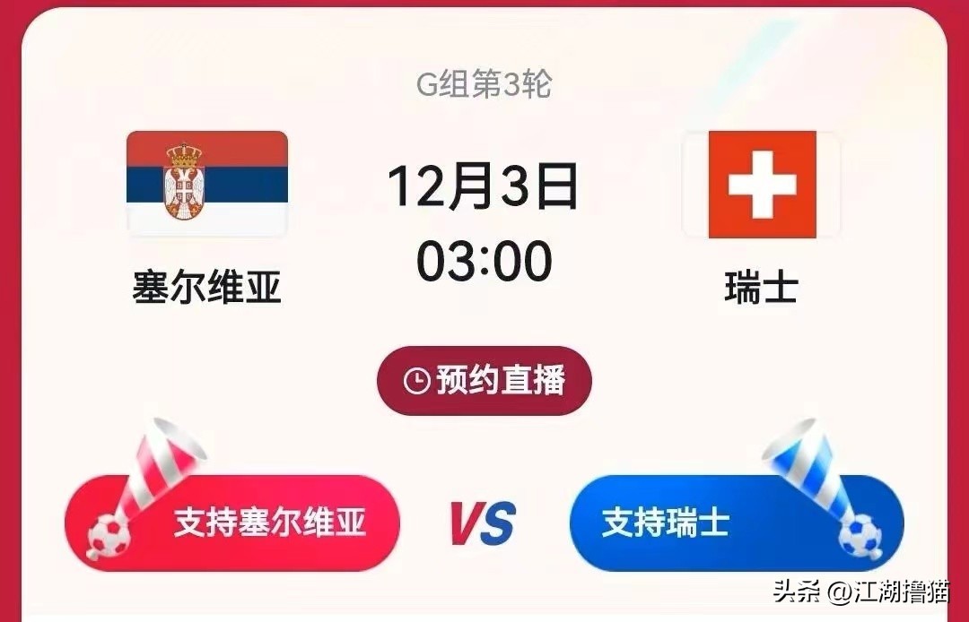 北京时间12月3日晚上3:00,世界杯将迎来塞尔维亚VS瑞士的赛事。