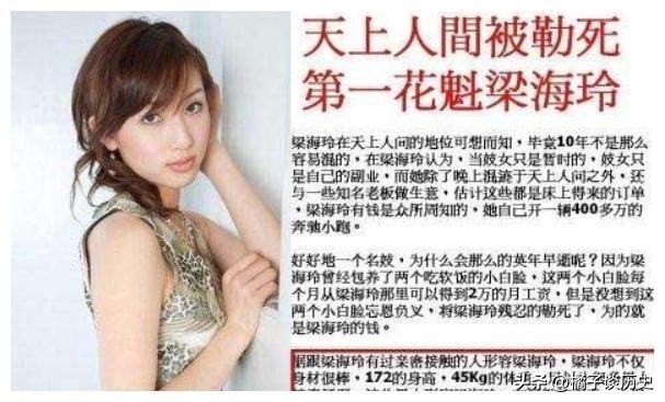 对于当时首都的天上人间,作为京城公子哥的他们再熟悉不过了,天上人间的第一头牌花魁梁海玲,凭借着身材火辣,皮肤白皙,让无数富家公子哥不惜花重金求得一晚。而作为天上人间的第一头牌花魁,梁海玲的资产更是拥有上千万。然而最后却被人勒死在自己家中。