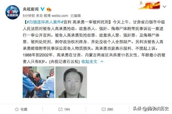 在长达10多年的追捕中,警方投入了大量的人力物力,最终于在2016 年 8 月 26 日,在白银市工业学校一小卖部内将凶手高承勇抓获。1988 年 5 月至 2002 年 2 月期间,他一共实施了 11 起强奸杀人案,且作案手法残忍。简直就是现实版的恶鬼在人间,地狱空荡荡。2019 年 1 月 3 日,高承勇被执行死刑。