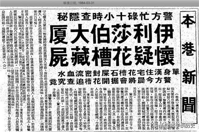 1984年3月31日,铜锣湾伊利莎伯大厦A座26楼的住客闻到阳台花槽传出阵阵恶臭,于是跑过去发现隔壁单位的花槽有血水渗出,于是立即报警。警方达到现场后了解隔壁房间一直没人居住,警方后来打开隔壁房间后发现花槽已用水泥填平,随后警方在从花槽里挖出两具男尸,其后证实死者是一对新加坡金商少东兄弟谢顺发与谢顺成二人,他们被五花大绑活埋在花槽之中。死亡时间大概在10至30天之间。后来因为凶手使用假的身份信息,以及未留下任何有利的证据,至今仍未破案。