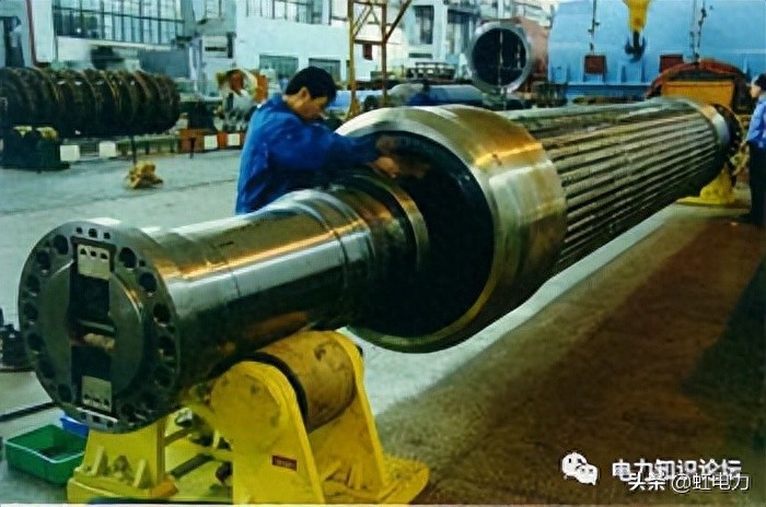 发电机的转子铁芯由高:机械性能和导磁性能良好的26Cr2Ni4MoV合金钢锻件加工而成,外径为1。13m,本体长6.25m,总长12.025m,重量72t。