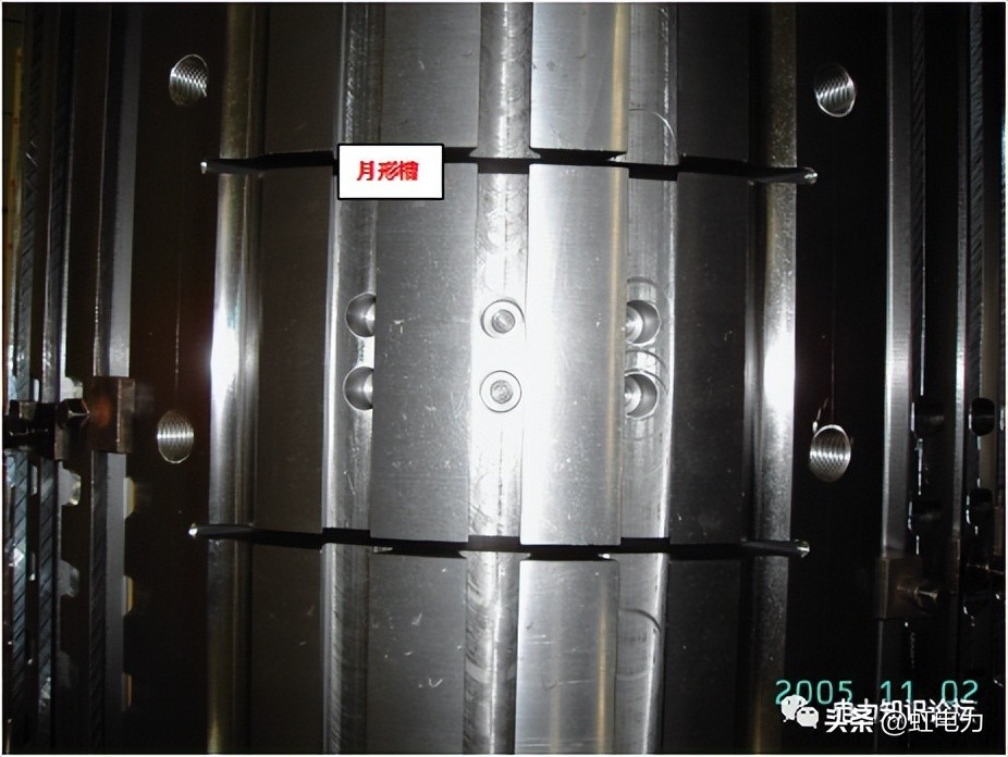 故要仔细检查转子槽楔有否烧伤、磨损或位移的痕迹,检查护环与转子配合面上有无过热和机械损伤,可用工业内窥镜观察护环下的端部绕组有无位移或变形。