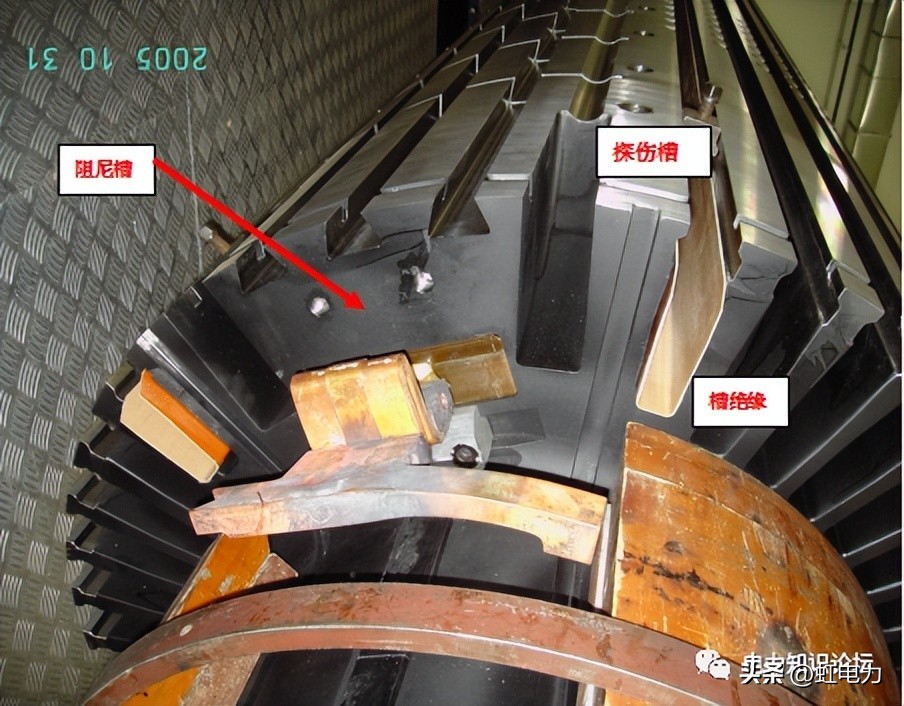 阻尼槽放置高导电率、高强度的铍钴锆铜槽楔,可以分流较多的负序电流。