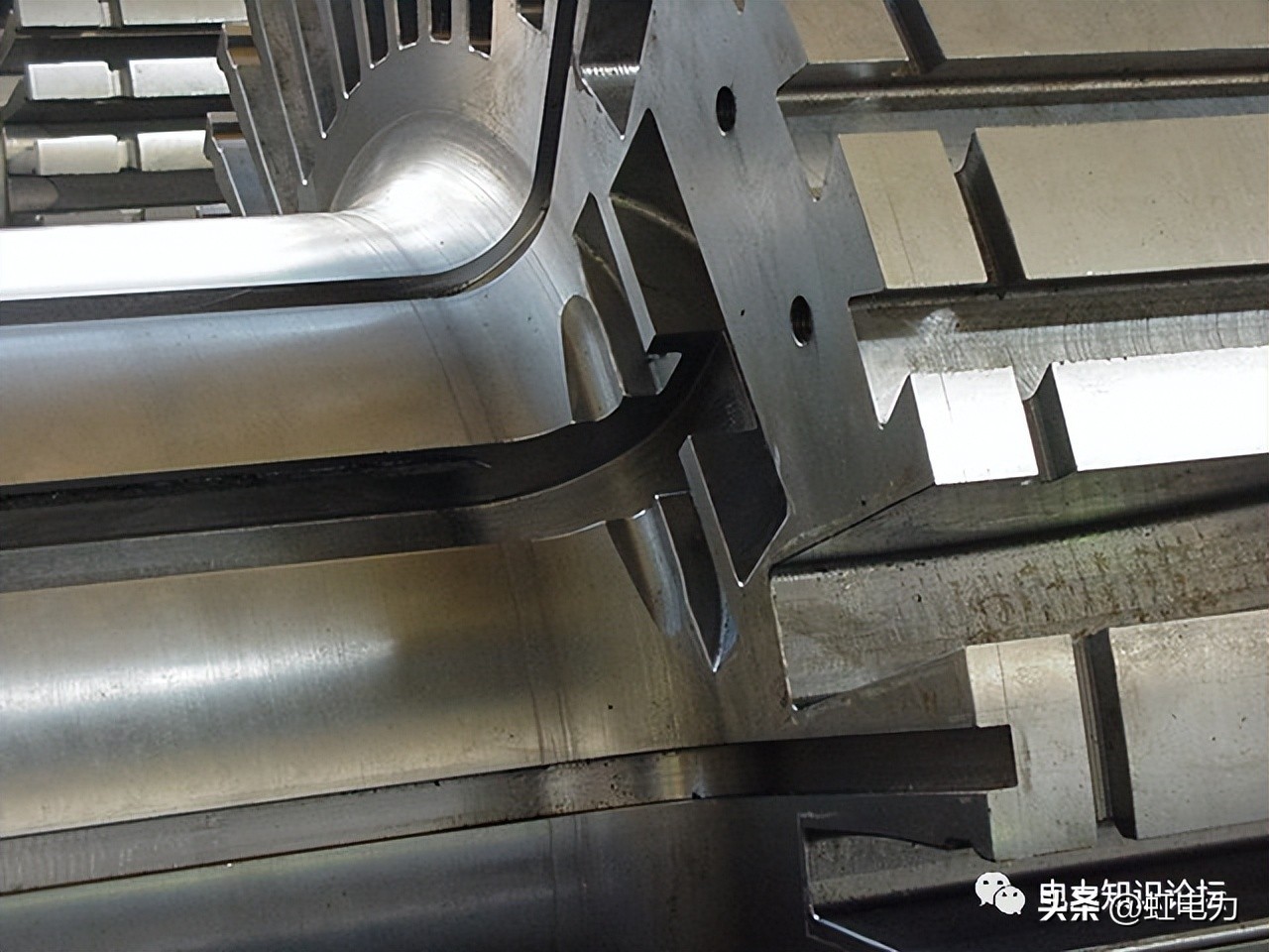 采用精密加工成形的舌榫接头用中频钎焊拼接而成形,出厂前还要测动态交流阻抗以检查转子有无匝间短路。