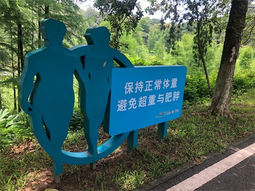 这是一个健康主题公园,所以你在行走的过程中随处可见鼓励你运动的标语。生命在于运动,趁着自己还能走得动,就得多走走,不要等老了心有余而力不足对吧?