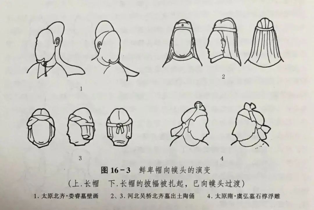 这种用四带扎起的头巾,仍属于鲜卑帽的范畴,