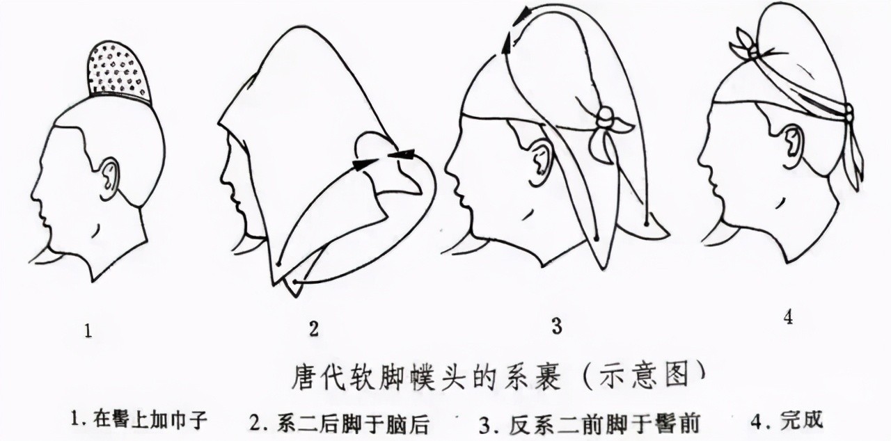 因为此时的幞头里面加入了木制的衬垫物——巾子,使用时扣覆在髻上,再用巾帕系裹。