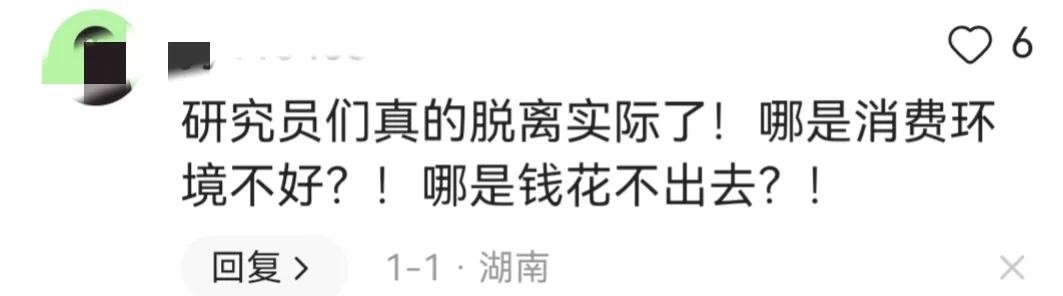 也有网友说,“研究员们真的脱离实际了!哪是消费环境不好?!哪是钱花不出去?!”。
