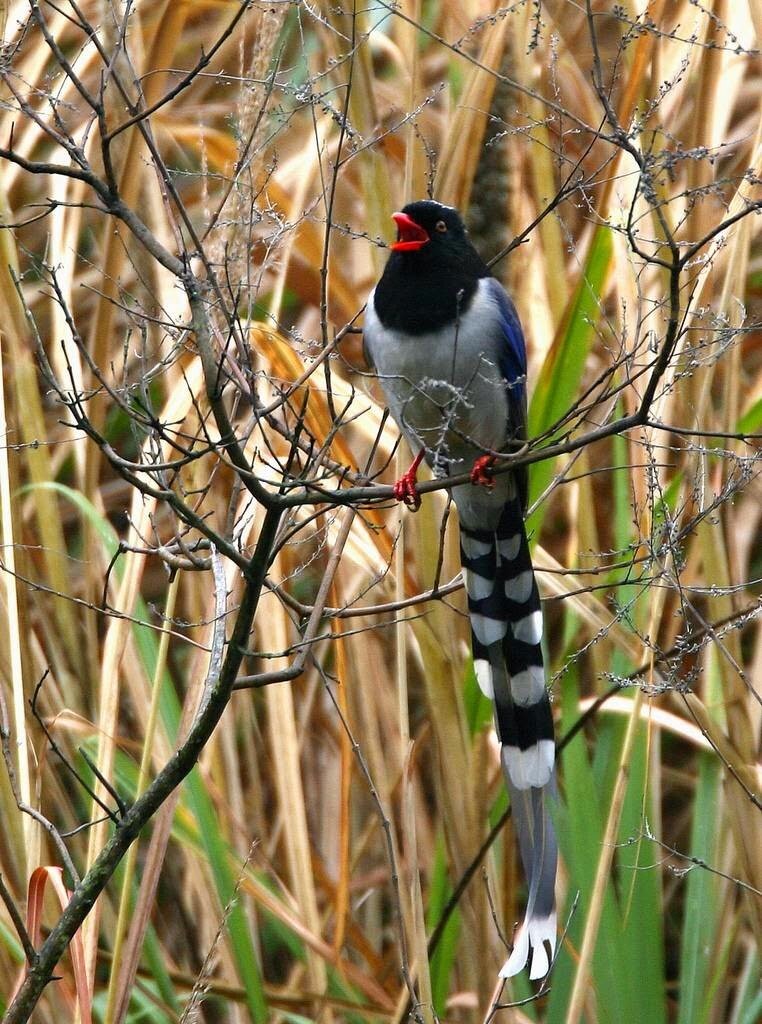 这种喜鹊的特点是尾羽很长,比任何其他喜鹊的尾羽都要长,或者说,比任何乌鸦家族成员的尾羽都要长。这种喜鹊分布于印度北部和越南,喜欢栖息在丘陵或山区。像大多数其他喜鹊物种一样,它以各种食物为食,从小型哺乳动物到水果和种子。只要有机会,她还会盗取鸟巢并吃掉鸟蛋和小鸟。