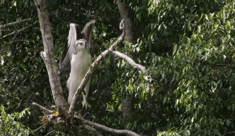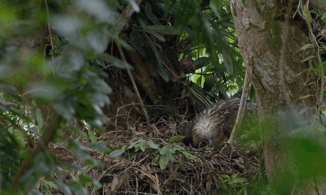 每年10-12月,食猴鹰就会选择一处足够粗大结实的树杈,夫妇俩共同搭起一个巢穴,准备开始养育后代。