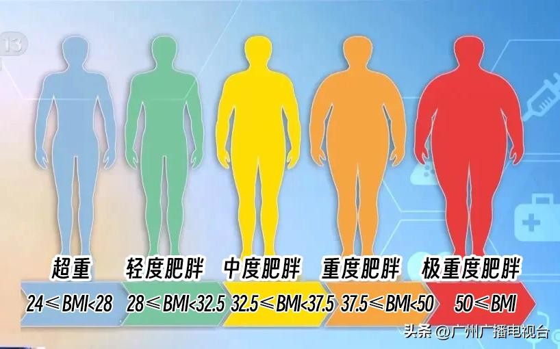 BMI<18.5为体重过低;18.5≤BMI<24为正常体重;24≤BMI<28为超重;28≤BMI<32.5为轻度肥胖;32.5≤BMI<37.5为中度肥胖;37.5≤BMI<50为重度肥胖;BMI≥50为极重度肥胖。