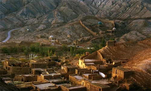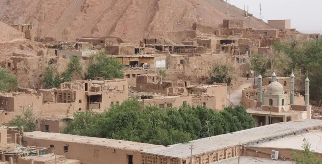 麻扎村,位于土峪沟乡火焰山第三道峡谷内,地处大峡谷南端,苏贝希河穿村而过。村子错落有致地沿山势、河势排列,清真寺、宗教会所与七圣人墓形成景观空间轴线,村内由四通八达的巷道连通,户户相通又自成单元。
