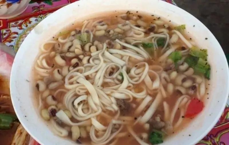 豆豆面,是鄯善人日常主食之一,汤饭的一种,老新疆人家的家庭饭,把手擀刀切面丢入汤锅中煮熟捞出,配以作料即可食用,营养丰富,味道极佳,数鄯善的最为有名,是一道传统的新疆美食。