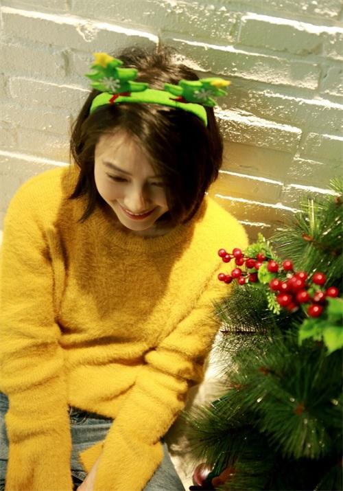 微博的配图是高圆圆为圣诞节拍摄的个人写真,照片中高圆圆身着黄色的毛衣,怀抱里抱着一个小猫咪,坐在圣诞树旁边,短发遮面笑容甜甜。如此美丽的照片让粉丝大呼漂亮。