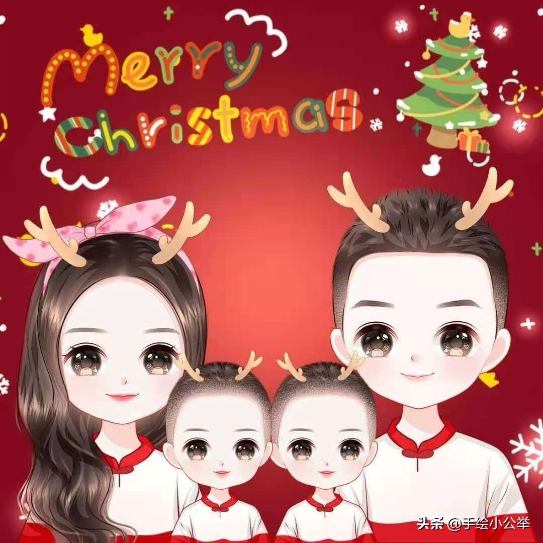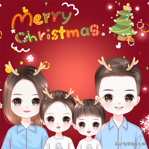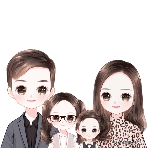 一家四口五口卡通真人手绘全家福,可爱呆萌,有趣有意思..