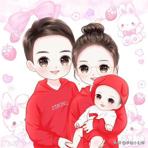 换个头像吧,一家四口五口卡通全家福头像,儿女双全美满温馨