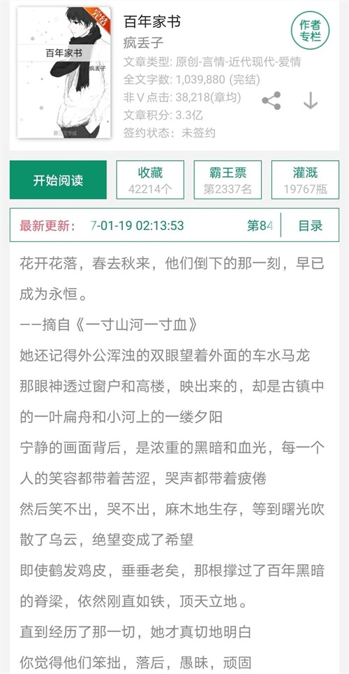 这本看的很有感触,作者文笔很好,但是后面看的有点压抑,所以没有看完。可以去看看是不是自己喜欢的类型!
