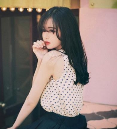 黑色长发在肩头,配上轻薄的空气刘海,甜美清纯,刚刚遮住眼睛的齐刘海给人一种欲说还休的感觉。