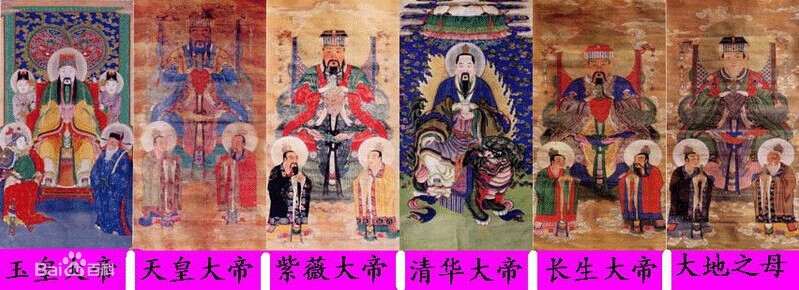 十方天尊(东方玉宝皇上天尊,南方玄真万福天尊,西方太妙至极天尊,北方玄上玉寰天尊,东北方度仙上圣天尊,东南方好生度命天尊,西南方太灵虚皇天尊,西北方无量太华天尊,上方玉虚明皇天尊,下方真皇洞神天尊)