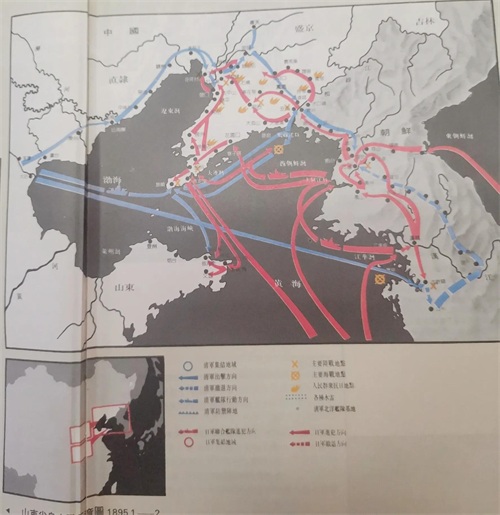 在日军野蛮入侵的同时,东北和山东的广大民众纷纷组织起来,协助军队抗战,保家卫国。山东半岛之战示意图1895.1——2