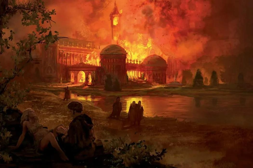 雷加王子出生在259AC[1]。那一晚,时任国王伊耿五世,以为即将到来的雷加王子庆生为名义,召集王室亲友在盛夏厅庆祝。但他真正的目的是找来火术士,尝试用野火[2]孵化龙蛋。但最终野火非但没能孵出巨龙,反而引发火灾。大火焚毁了整个盛夏厅。而这场火灾,对坦格利安家族的打击,无疑是巨大的。这场火灾,他们失去了伊耿五世的长子邓肯王子,以及与王子同名的御林铁卫队长“高个”邓肯爵士,还有服务盛夏厅的最后一位学士——葛尔丹博士。历史上把这场火灾称为“盛夏厅悲剧”。
