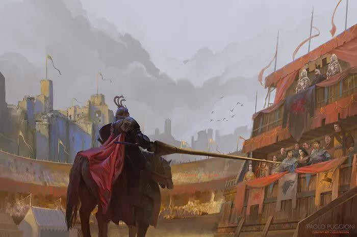 281AC,沃尔特·河安在赫伦堡举办了比武大会,规模之大,七国并至。此时的雷加已经迎娶了伊莉亚并有了自己的孩子。他也参加了此次的长枪比武大会。而彼时的莱安娜同家人一同参加了比武大会。