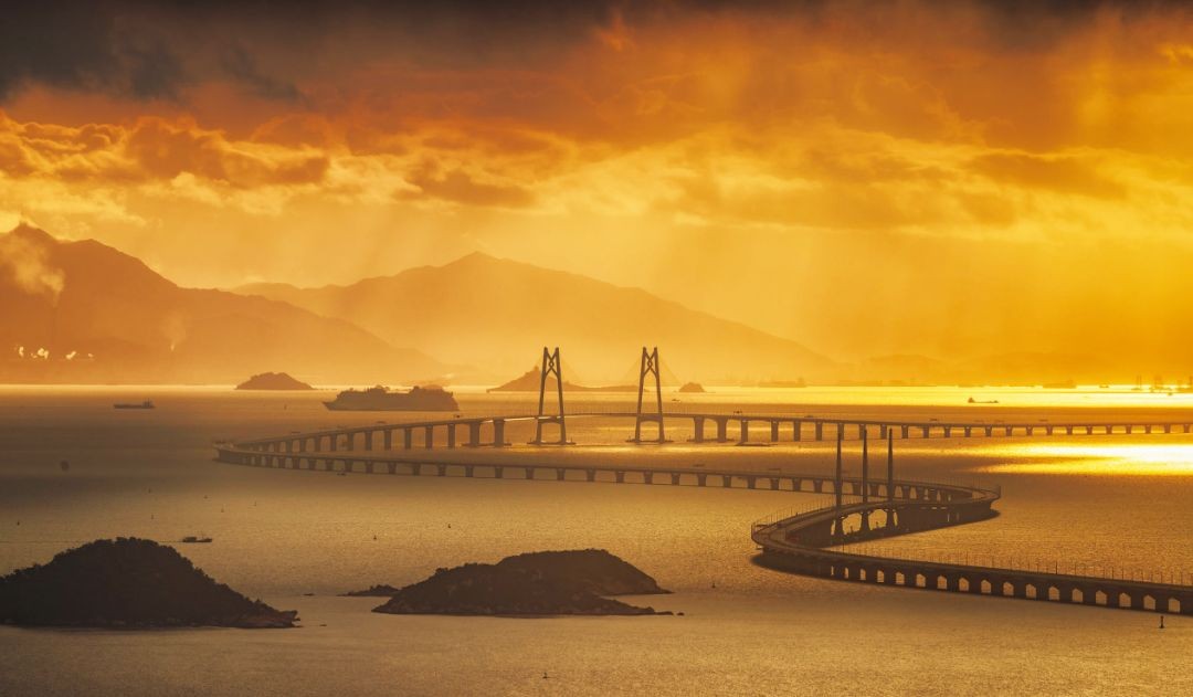 港珠澳大桥是连通粤港澳大湾区的交通枢纽,如同湾区的脉搏。图片摄于珠海加林山。