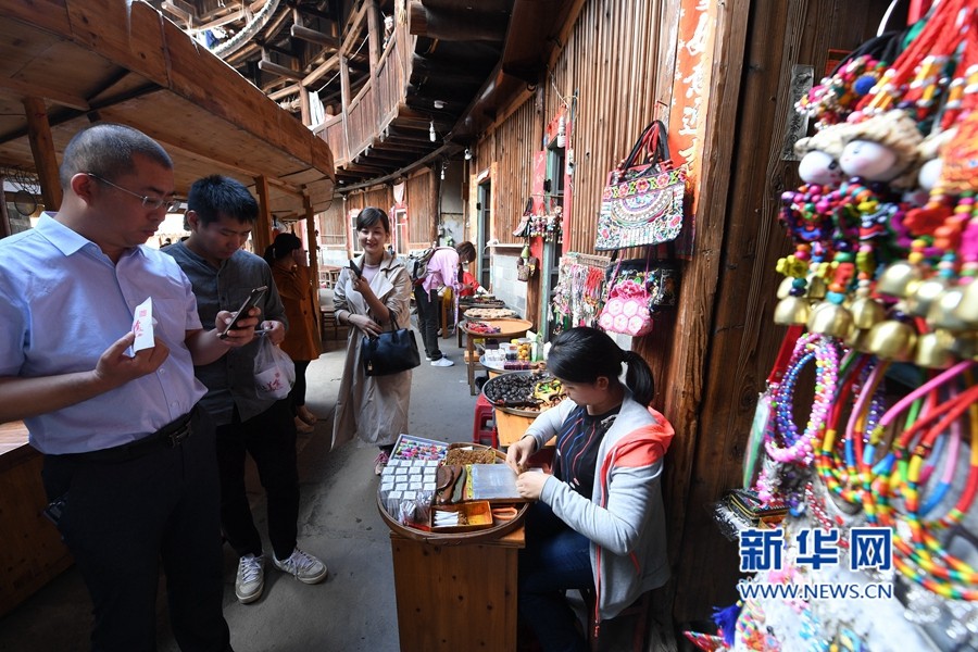 11月23日,游客在南靖县梅林镇坎下村的怀远楼购物。新华社记者林善传摄