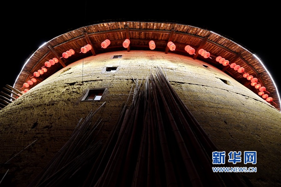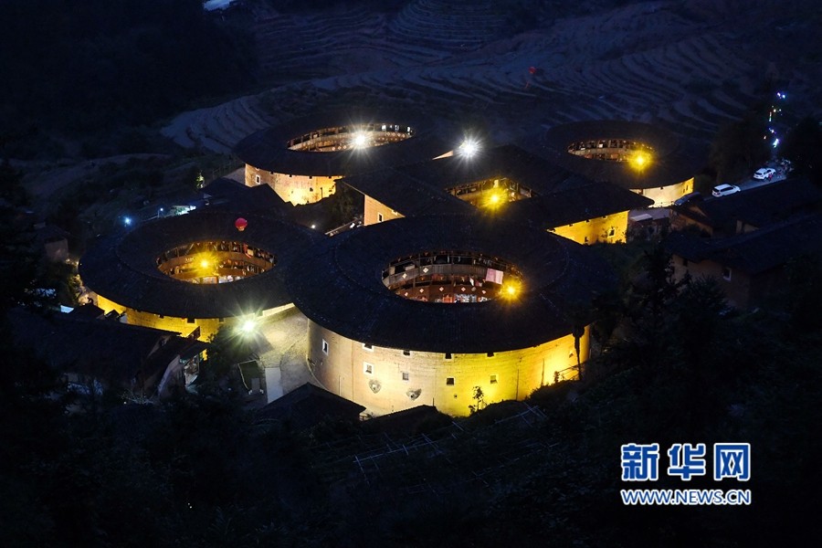 这是南靖县梅林镇坎下村的翠美楼夜景图(11月22日摄)。新华社记者林善传摄