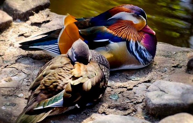 但是,鸳鸯真的是人们想象的那样对伴侣忠贞不渝吗?实际上他们并非完全的一夫一妻制,而只是在恋爱的时候寸步不离,一旦雌鸟产卵,雄鸟就会离开雌鸟出去寻欢作乐。