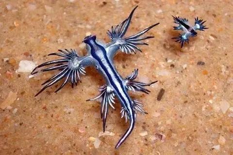 海神君完全不怕这些腔肠动物刺细胞的毒性。更神奇的是海神君吃下腔肠动物的刺细胞之后并不完全把它们消化,而是选出一些厉害的刺细胞运输到它们的“触手”末端。而这些刺细胞在异种生命的身体上居然仍然能发挥功能。于是海神君也就有了蜇人的本事,它们这方面甚至比僧帽水母还厉害。所以见到沙滩上的这样漂亮的海蛞蝓,不用冒然用手拿。