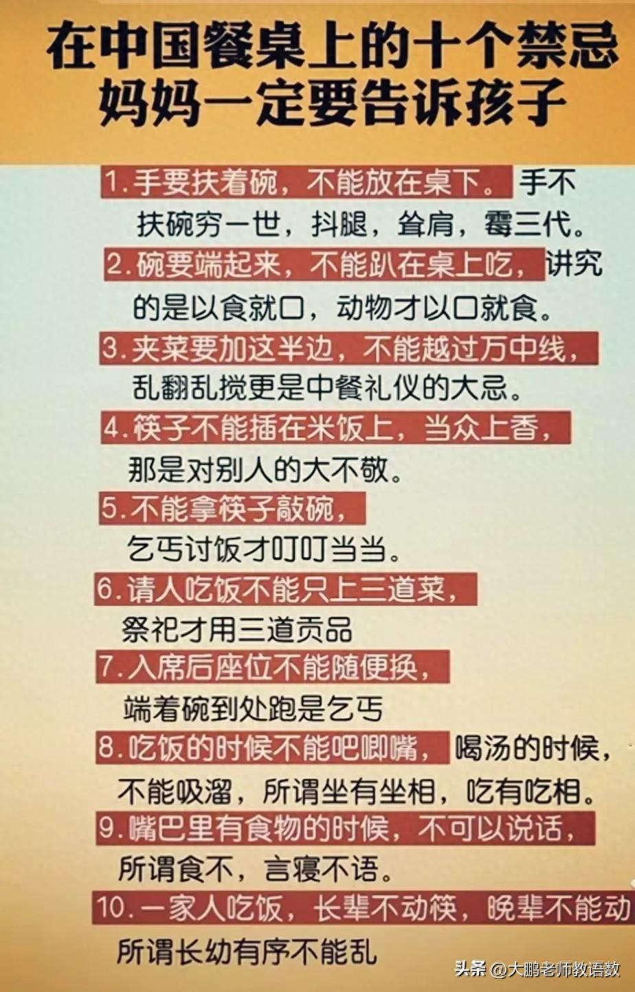 在中国餐桌上的十个禁忌,父母要告诉孩子并付诸实践,提高教养!