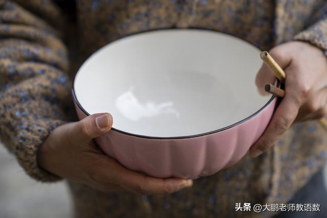 2.碗要端起来,不能趴在桌上吃,讲究的是以食就口,动物才以口就食