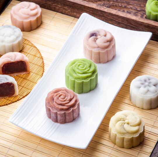 这个糯米粉+粘米粉+澄粉的配方其实还是蛮传统的,除了包裹馅料用月饼模压成月饼之外,包上水果、淡奶油做成雪媚娘或者大福,也是很好吃的呢。 另外,我们还采用了抹茶粉、果蔬粉这样的食材来给冰皮月饼上色,这样上色出来的冰皮月饼不仅有新的风味,而且颜色饱和度低,非常好看。 喜欢冰冰凉凉的你,快来试一试吧。