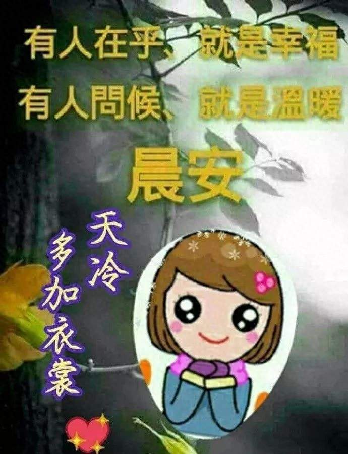 1、冷冷暖暖的四季,深深浅浅的惦记;远远近近的距离,缠缠绵绵的情谊;多多少少的寄语,风风雨雨的相惜;反反复复的问候,洋洋洒洒的笑意。愿你身体健健康康,早安,天冷了,注意保暖哦!