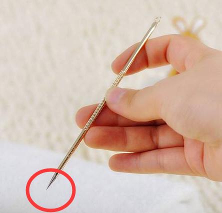 之后再用卫生干净的暗疮针,把有尖尖的那头将脂肪粒白头挑开;