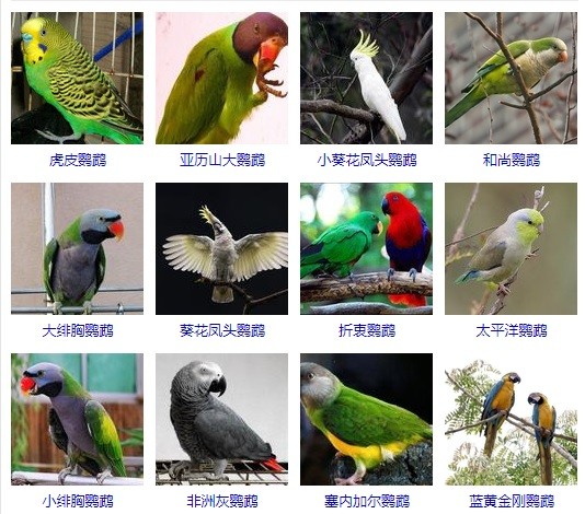 花鸟市场常见的鸟儿有文鸟、鹦鹉、画眉等,其中以鹦鹉的数量居多。鹦鹉种类繁多,形态各异:有华贵高雅的紫蓝金刚鹦鹉、全身洁白头戴黄冠的葵花凤头鹦鹉、能言善语的亚马逊鹦鹉、五彩缤纷的彩虹吸蜜鹦鹦鹉、小型葵花似的鸡尾鹦鹉、小巧玲珑的虎皮鹦鹉和牡丹鹦鹉、大红大绿的折衷鹦鹉、形状如鸽的非洲灰鹦鹉。