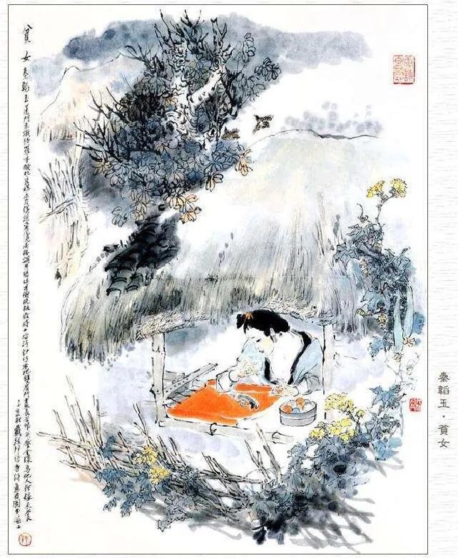 “蓬门未识绮罗香,拟托良媒益自伤。”独白从姑娘的家常衣着说起,说自己生在蓬门陋户,自幼粗布为衣,没有见过绫罗绸缎;已是待嫁之年,心想找个好媒人说亲,可是想到世人只重富贵不重品格,人们是不会看重我这贫家之女的,因此越发增加伤感了。