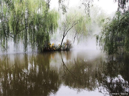 意境同样是这幅对联的难度之一。想象一下,在初秋的一天,幽静的池塘边上排排着柳树,一层雾气将其笼罩其中,若隐若现,就仿佛是穿着朱砂的美人,摄人心魄,这样的意境自然是极美的。