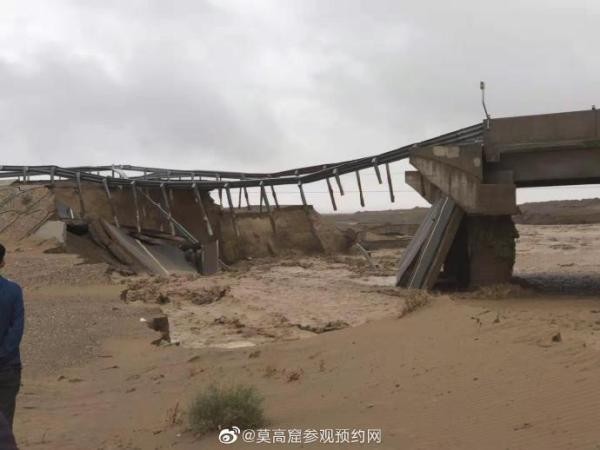 此前,通往敦煌莫高窟窟区的道路被冲毁