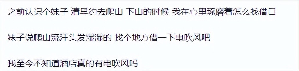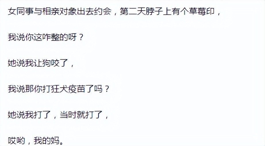6、一个女孩(叙述者)和闺蜜在街上走,看见一个小伙,闺蜜上去要微信,小伙说:““我没有微信。”闺蜜说:“那亲个嘴吧,我看你带嘴了。”后来他俩成了……