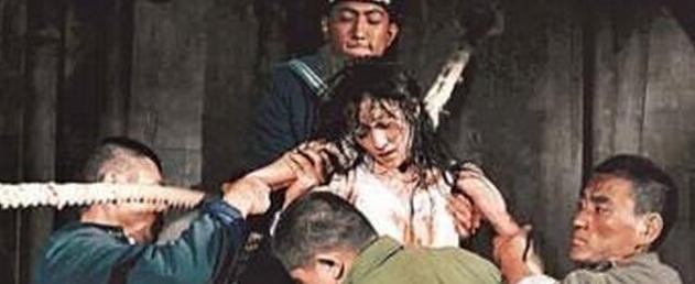 游街结束后,灭绝人性的土匪将丁佑君的四肢绑在柱子上,用皮鞭疯狂的抽打,皮鞭打累了,又换做木棒,棍棒打够了,又施以老虎凳,丁佑君多次晕倒,土匪又泼水唤醒,最后他们将钢钉插入丁佑君的乳头插进乳房里,丁佑君的身体被折磨的不成样子,身体也失去的知觉,世间再也没有比这帮土匪更残忍更灭绝人性的了...