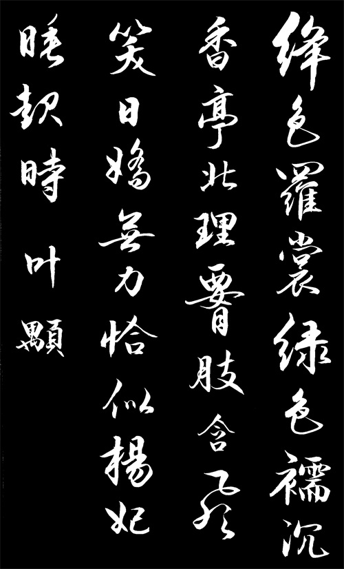 绛色罗裳绿色襦,沈香亭北理腰肢。含风笑日娇无力,恰似杨妃睡起时。