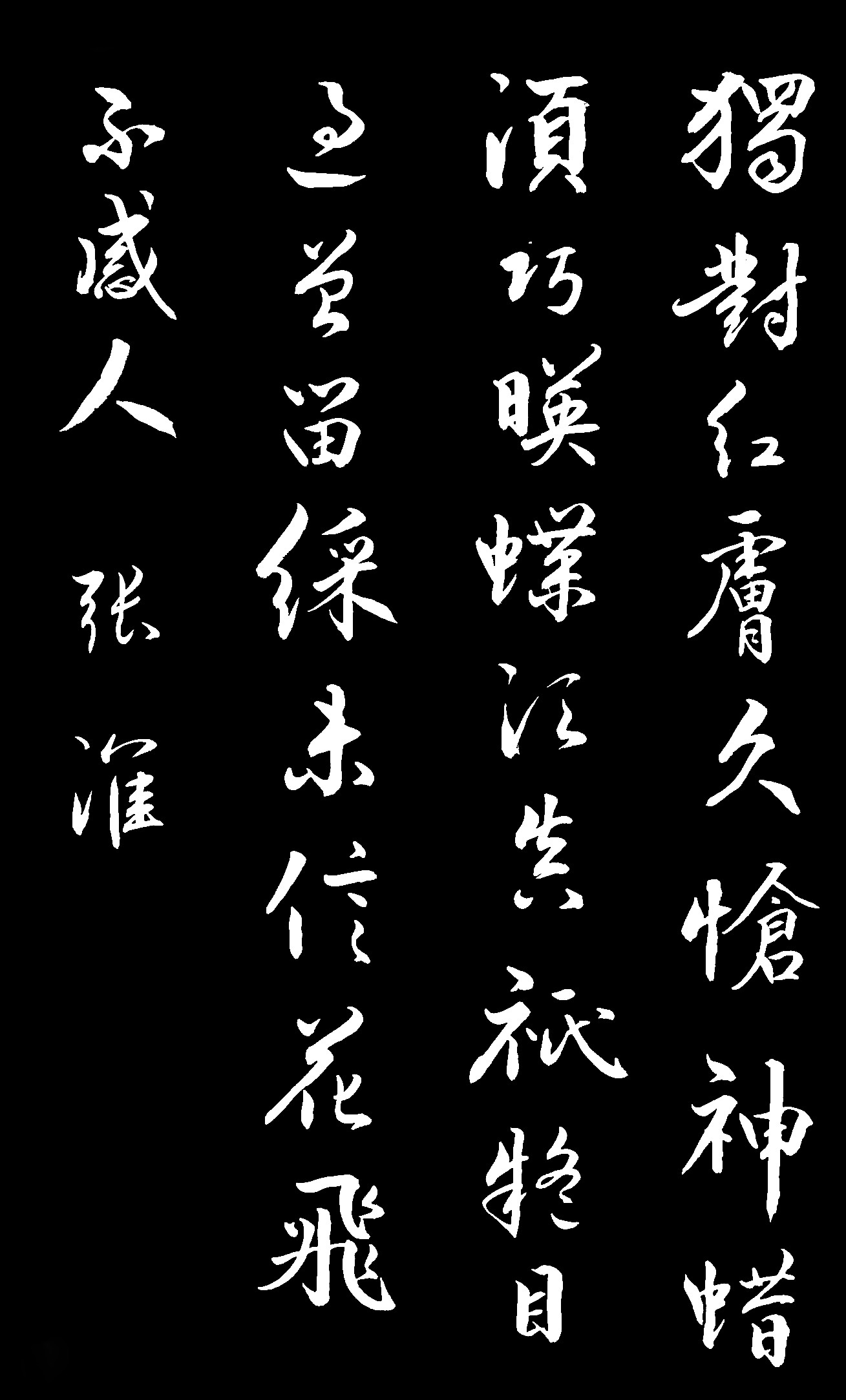 张淮 - - 独对红肤久怆神,蜡须巧映蝶须真。 只疑目过曾留彩,未信花飞不感人。