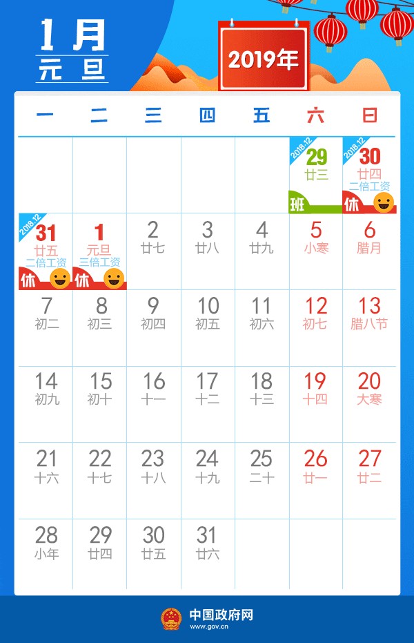 2019年的假期安排