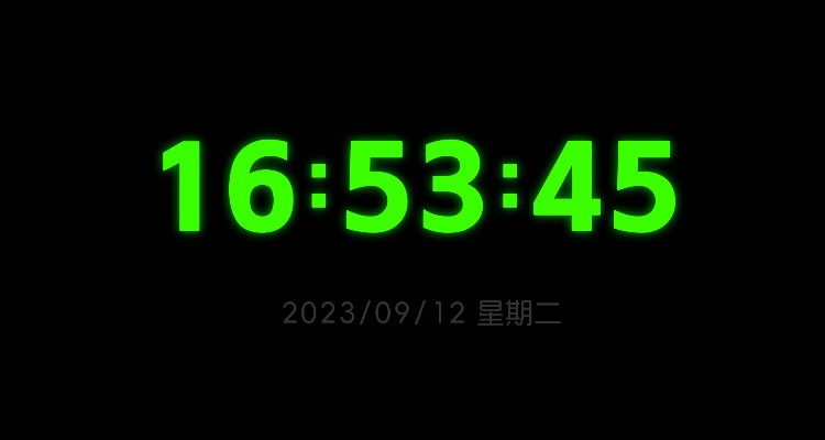 12、绿色数字时钟屏保,大大的绿色数字,还带点发光效果,让时间更加清晰的显示在你的眼前,让你感受时间的流逝尽在悄悄的进行中……