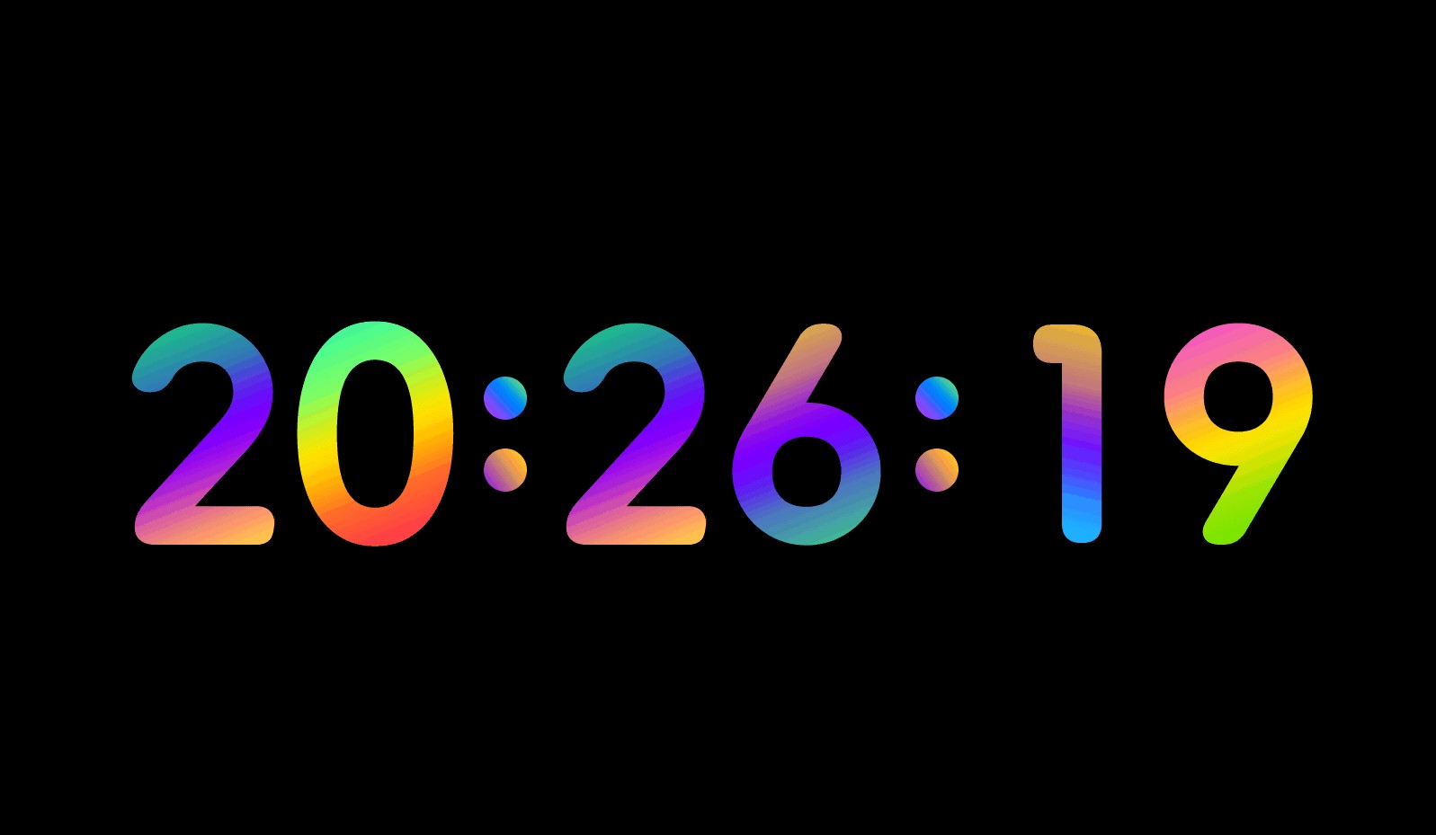 4、彩虹时钟屏保,丰富的彩色字体让屏保添加色彩,动态时钟看起来非常有视觉效果;
